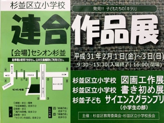 今日から「杉並区立小学校 連合作品展」が始まりました。「杉並区立小学校図画工作展