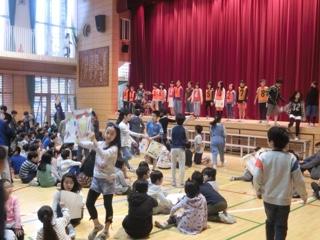 6年生からはお礼の出し物です。コミカルな演技で笑いを取りながら6年生らしさを見せてくれました。