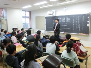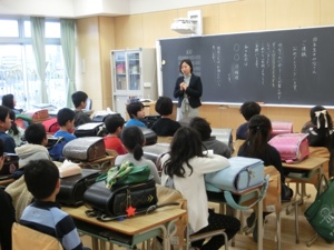 これは4-1です。4年生には、学年全体を教えてくれる補助教員の先生がいることを紹介しています。