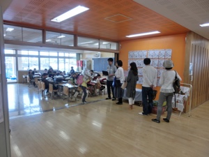 避難訓練終了後、教室に戻って引き取り訓練です。大きな災害があった場合には、このようにお迎えが来るまで学校で待機することになります。