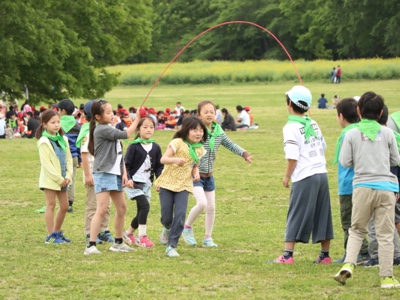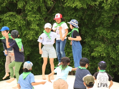 私のいたチェックポイントは「ドラゴンの砂山」。他の学校も似たような活動をしているので、緑のスカーフが目印です。