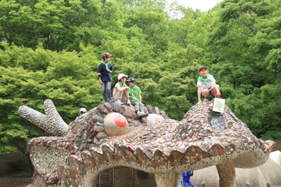 新緑の園内をふわふわドーム前まで歩いて行きました。