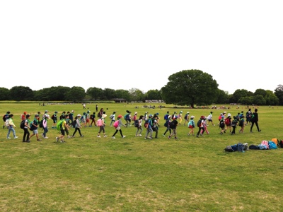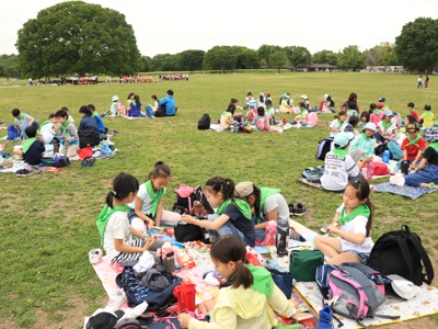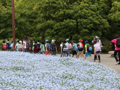 西立川駅そばの昭和記念公園に到着しました。たくさんの学校が遠足に来ていました。