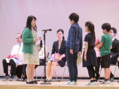 どの先生にも、子どもたちからお礼のお手紙と花束が贈られます。これは図工専科だった今井先生です。