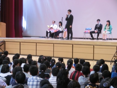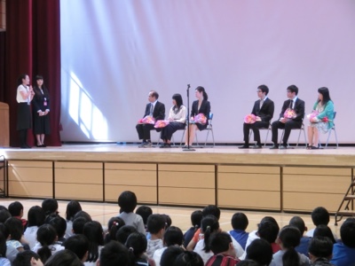 今日は「離任式」。昨年度まで天沼小でお世話になった先生方にお別れする日です。理科専科だった松川先生のお話です。