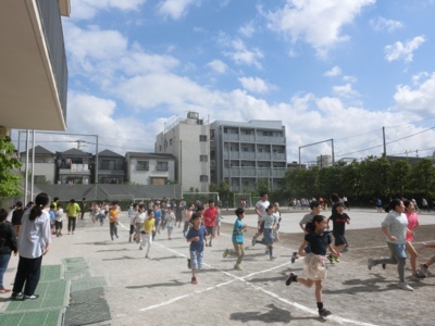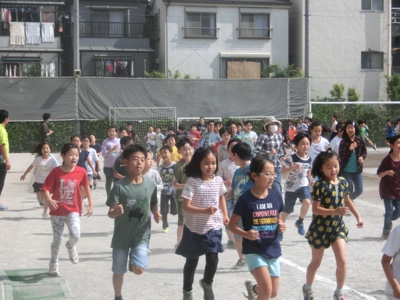 4年生は5分間、5年生は6分間自分のペースで走り続けます。