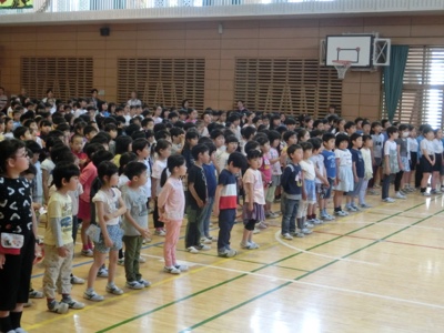 いつも前の方の1〜4年生ばかり撮っているので、後ろの5・6年生の並んでいる様子も撮ってみました。さすが高学年は立派ですね。