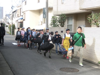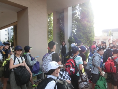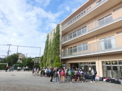 昨日の大雨が嘘のようないい天気になりました。朝6:30、子どもたちが大きな荷物を持って集合しました。