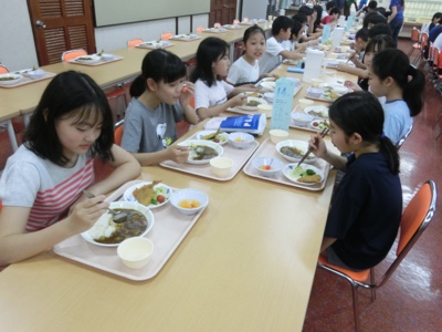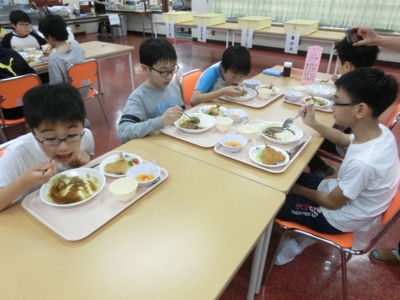 カレーライスはお代わりができます。4杯も食べた子もいるようです。みんな元気です。