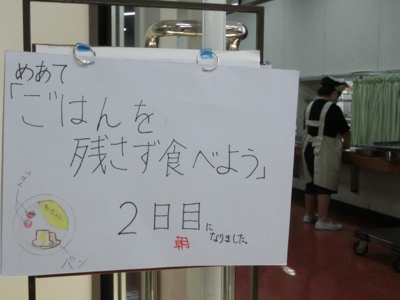 食堂の入口に、食事係の作ったポスターが掲示されています。