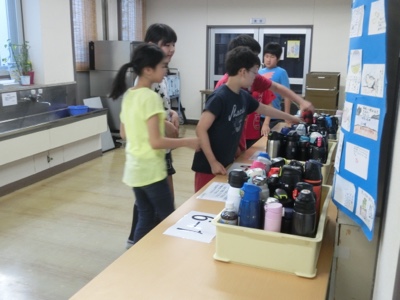 食堂から戻るときに、お茶を入れてもらった水筒を持っていきます。今日は暑い日になりそうです。