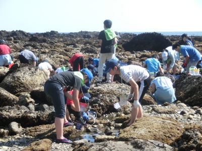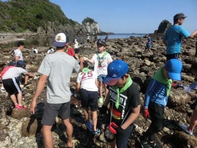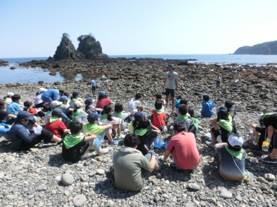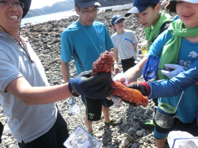 サンドスキーから帰って、そのまま逢ヶ浜で磯観察をしました。朝、レクチャーをしてくださったガイドの堀さんが逢ヶ浜で待っていてくれました。