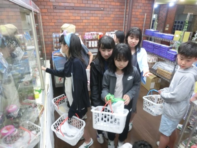レジで会計をしてお釣りをもらいます。残りのお金がある人は、また先生に預かってもらい、明日のシャボテン公園でお土産を買う時のために残しておきます。