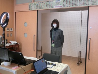 弓ヶ浜クラブのロビーがお土産売り場になります。カゴを持って品物を選んでいます。