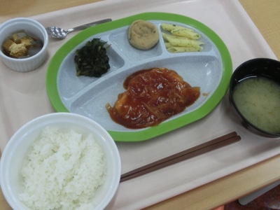 今日の夕食は、ポークソテー、ごはん、味噌汁などでした。