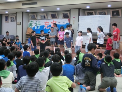 続いてクイズ大会です。なぞなぞが12問出されて、それをクラスごとのグループで考え、回答用紙に記入していきます。