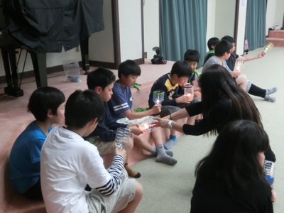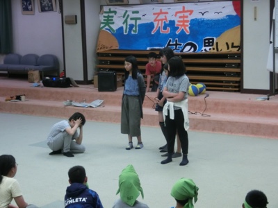 ダンスで終わるかと思いきや、即興お話リレーの「向井先生の一日」を聞かせてくれました。
