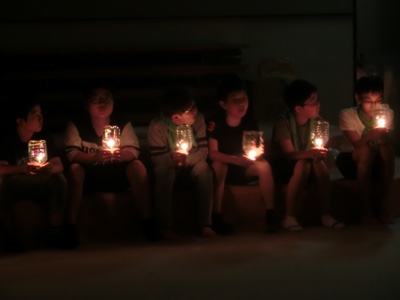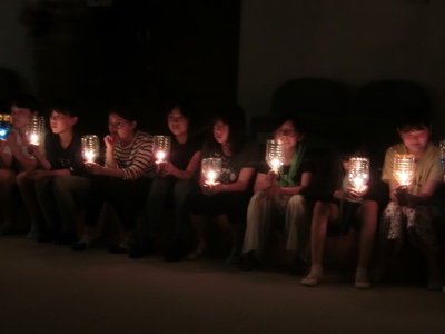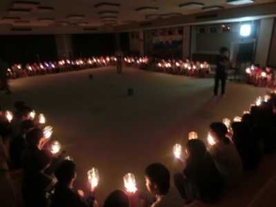ちょっと時間が伸びてしまったのですが、最後にキャンドルサービスをしました。自作のロウソク立てに火を灯してもらいます。