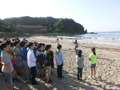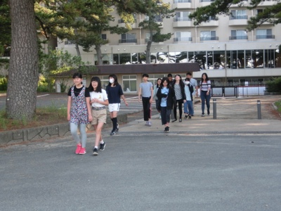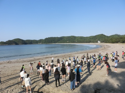 身支度をして、グループごとに弓ヶ浜に向かいます。