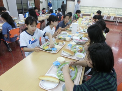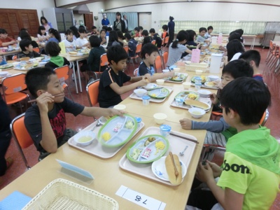 食堂の前には、昨年の天沼小6年生からの感謝のお手紙が貼られていました。