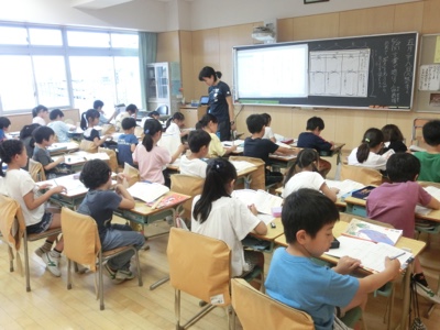 4-1では稲垣先生が授業をしていました。これは理科の「天気と気温」の学習です。