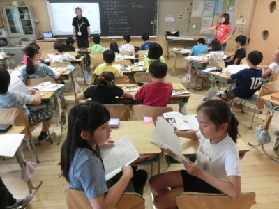 こちらは3-2の国語です。「言葉で遊ぼう」という説明文教材を読んで、内容をまとめていました。