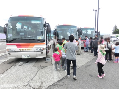 ここで3台のバスが合流し、5校の子どもたちが揃いました。このあと、河口湖総合公園に向かいます。