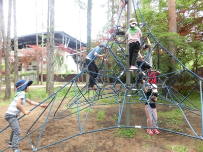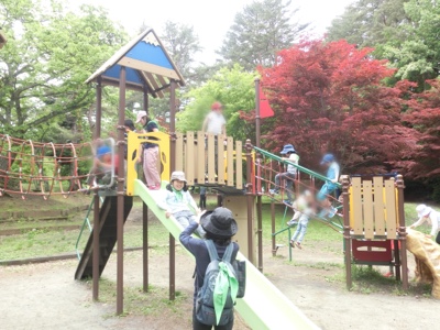 2019-05-29 こだま学級連合移動教室1日目③河口湖総合公園 バスは河口湖に着きました。富士急ハイランドの向こうに富士山も少し見えています。 河口湖総合公園に到着です。 5校の子どもたちが並んで顔合わせをしました。 まず、広い芝生でお弁当を食べます。 お弁当のあとは、遊具で遊びました。 それぞれが遊びたい遊具を選んで、楽しそうです。 たっぷり遊んだあと、富士学園に向かいます。 Home › こだま学級 › こだま学級連合移動教室1日目③河口湖総合公園 関連記事 6年生の表現運動 音楽会2日目 AKAの日 運動会午前の部① 5年生の社会科見学 こだま学級連合移動教室1日目②バスで河口湖へ こだま学級連合移動教室1日目④富士学園に到着