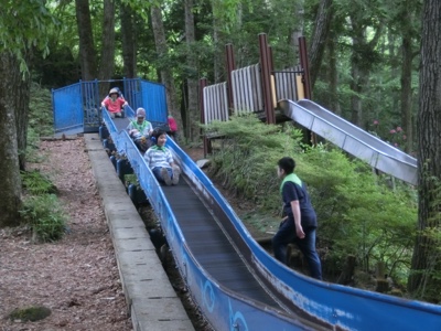 この長いローラー滑り台が楽しくて、何度も何度も繰り返し滑っていました。