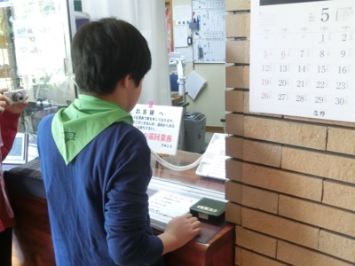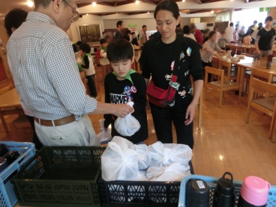 朝食後に、今日のお弁当と水筒を受け取って、ハイキングの準備をします。天候も良く、予定通りのコースでハイキングをすることができそうです。