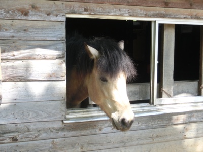 バスが待つ木曽馬牧場では馬がお出迎え。