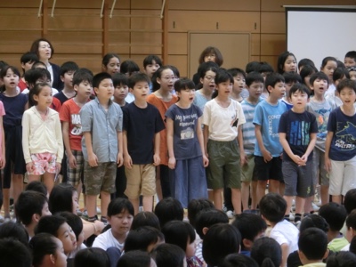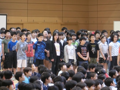 2019-06-08 音楽朝会 今朝は初めての音楽朝会でした。4・5・6年生がそれぞれ歌を発表しました。 最初に5年生が「BELIEVE」を歌いました。 次に4年生が「小さな世界」を歌とリコーダーで発表しました。 6年生は「翼をください」を歌いました。 最後に、全員で校歌を合唱しました。 校歌の演奏は音楽クラブの子どもたちです。すてきな歌と演奏でさわやかな朝の時間になりました。これからの音楽集会も楽しみです。 Home › 4年 › 音楽朝会 関連記事 久しぶりの晴天 天沼まつり 5年生のAKP 2学期最終日 AKPの商品販売1日目 情報モラルの授業 6月の土曜授業&ICT公開授業