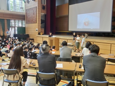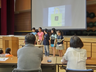 5年生がAKP(天沼会社経営プロジェクト)の品評会を行いました。商品開発から販売まで、模擬的な会社経営をすることを通して様々なことを学びます。今日は、会社として製造販売する商品を何にするかを検討する会です。企業経営者やデザイナー、主婦の視点など、審査員の方々がプレゼンテーションを採点します。