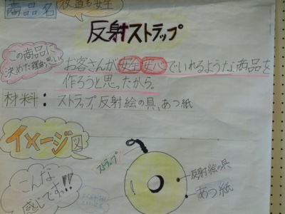 いろいろな商品のアイデアが出されました。プレゼンテーションソフトを使ったり、模造紙に描いたり、寸劇仕立てにしたりと、グループによって個性的な商品のアピールをしました。