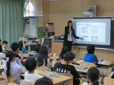 「SNS東京ノート」という教材を使って、生活を見直していく中で情報モラルについても気付かせていくという内容です。たくさんの先生たちが授業を参観しています。