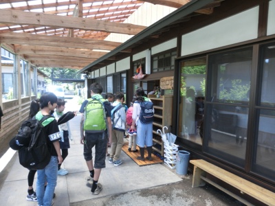 次はほうとう作りです。クラスごとに4つの民宿に分かれて体験します。5-2は「出口...