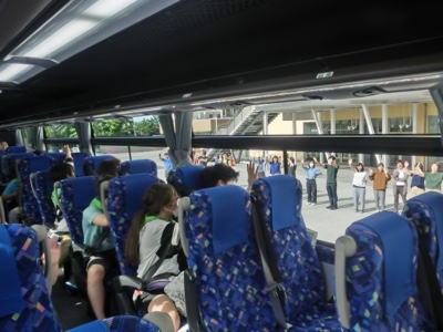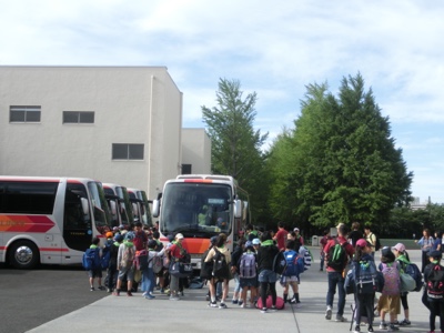 お見送りのおうちの方々や先生たちに手を振って出発しました。それでは3日間、現地からのリポートにお付き合いください。