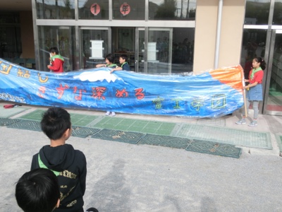 スローガンの確認です。「団結し きずな深める富士学園」だそうです。