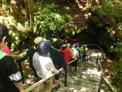 奥まで行って折り返してきました。風穴のあとは民宿でのほうとう作り体験に向かいます。