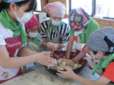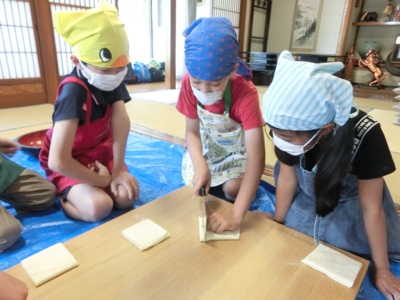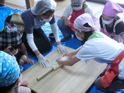 4か所に分かれているので見回りは大変。5-3がいる「富岳苑」は少し遠くて、行くのに苦労しました。こねた後はのし棒で延ばしていきます。