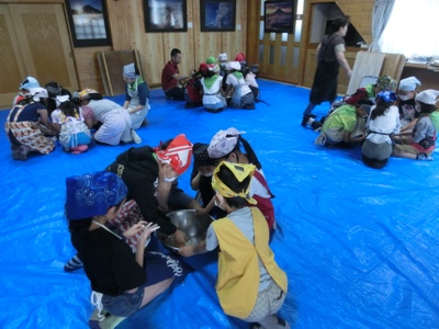 5-1が体験している「原の家」に行ってみました。ここでは座敷にシートを敷いてやっています。