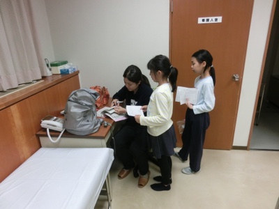 検温したら、保健係が健康カードをまとめて看護師さんにチェックしてもらいます。