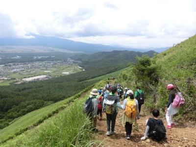 お弁当を食べる地点に向かって下山を始めました。富士山の裾野や忍野八海が遠くに見え...