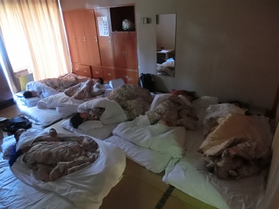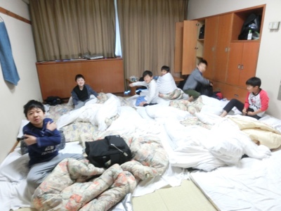 起床時刻前の部屋の様子です。起こされるまで寝ている子が多かったようです。
