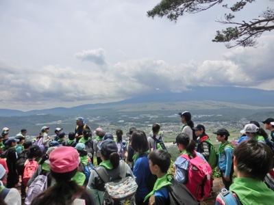 一番高いところまで登りました。富士山の上の方は雲の中でしたが、登山には上々の天気でした。