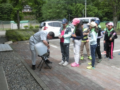 富士学園の方が車で冷たい水を運んできてくれました。これで水筒の中身を補充することができます。冷たい水にみんな大喜びです。