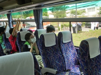 いよいよ出発です。荷物を持ってバスに乗り込みます。