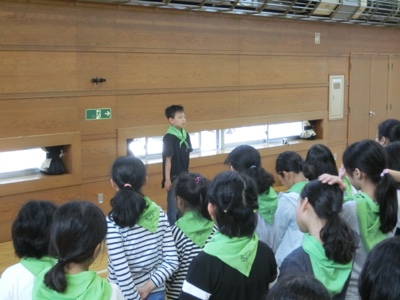 出発準備に時間がかかり、10分遅れで閉園式が始まりました。児童代表の言葉です。