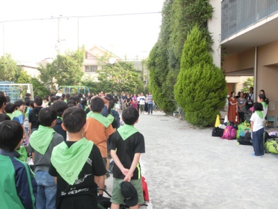 お迎えに来てくださった保護者の方々に向けて「ただいま!」と挨拶をしました。