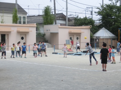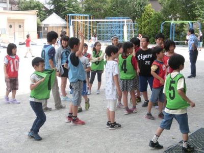 室内で遊ぶ班もあります。ここは「なんでもバスケット」をしているようです。